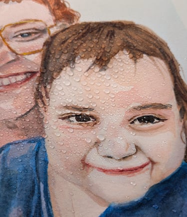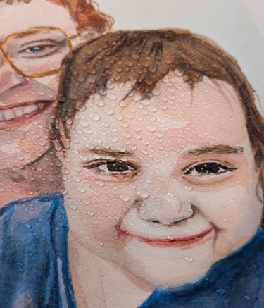 Each portrait is painted entirely by hand using watercolors on high-quality, acid-free 300 g/m² 100% cotton paper. I work from photographs and capture not only the likeness, but above all the atmosphere, interaction, and aura of the moment.
