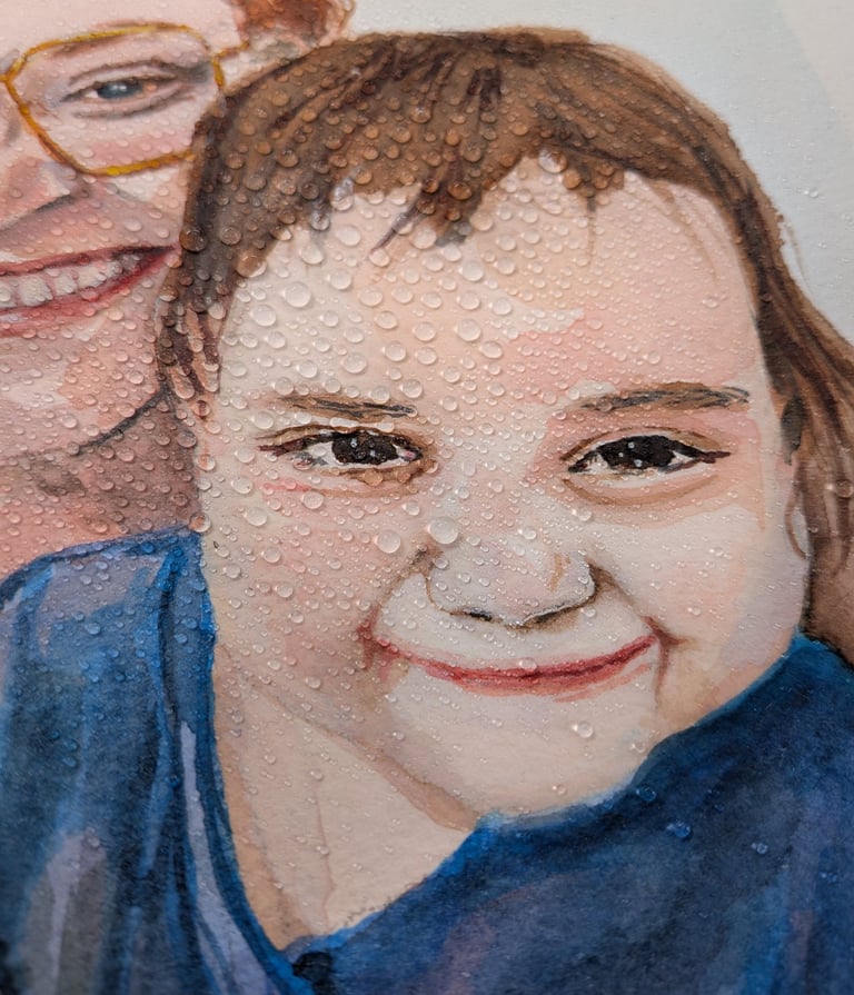 Chaque portrait est entièrement peint à la main à l'aquarelle sur du papier de haute qualité, sans acide, 300 g/m² et 100% coton. Je travaille à base de photos et je capture non seulement la ressemblance, mais surtout l'atmosphère, l'interaction et l'aura du moment.